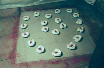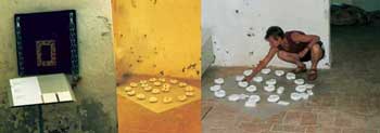 Papierobjekte, Watte, Transparentpapier und Eisenoxid