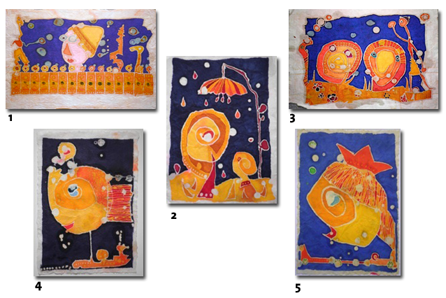 1. Frau Polson, die Erfinderin der Spiralpollen mit ihrer großen Kollektion, für die sie aus praktischen Erwägungen die Pollen verkleinert hatte: sie konnte so an einem Platz mehr von ihnen unterbringen! (Ihre Nase sieht übrigens so merkwürdig platt aus, weil sie im Laufe ihrer Erfindungen auch eine Nasenpolle erfand, mit der nicht gut Kirschen zu essen war.)