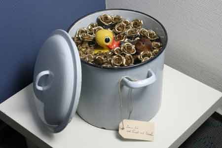 immer schwer beschäftigt, hatte neben seinen Schaufenstern wieder alle (verbotene )Töpfe dabei.